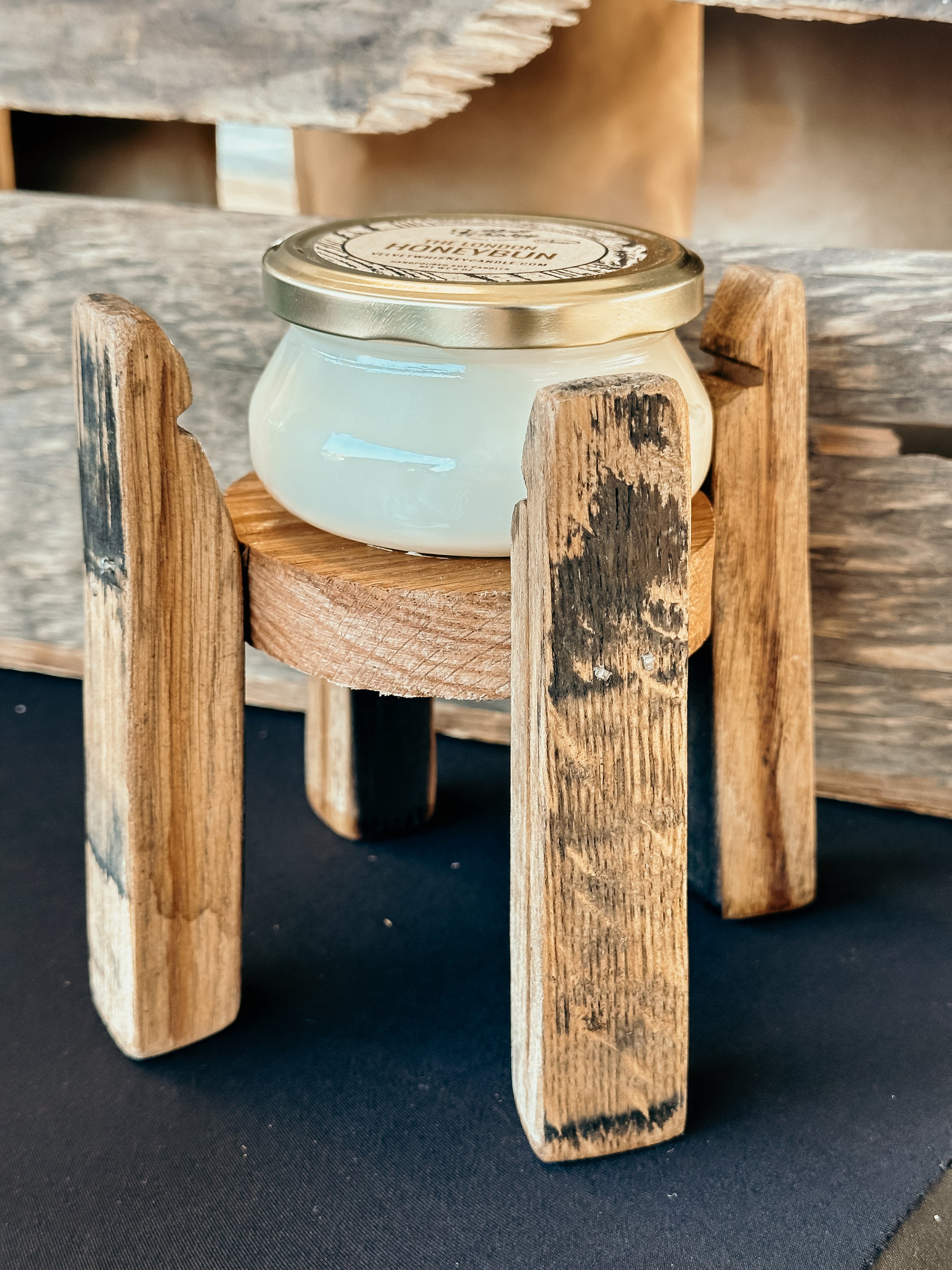 Handcrafted locally from authentic Kentucky bourbon barrel staves, each candle holder carries a story as rich as the wood itself. No two are alike — every curve, grain, and char tells its own tale of time-honored tradition.